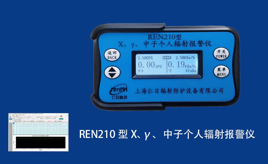 REN210 個人劑量報警儀REN210型X、γ、中子個人輻射報警儀內置SiPM和鋰玻璃晶體組成中子探測器儀器,采用反照率方式探測中子射線,同時也能探測X、γ射線。因此它可同事監檢測X、γ、中子三種射線。能顯示工作場所的劑量當量率和累積劑量,更換電池時,日期及累積數據能永久保存?蛇x配RenRiPersonal個人劑量管理軟件,該軟件可存儲多個人的歷史數據,能記錄日累積、月累積、年累積、輻照時長、計算平均劑量率、扣除或不扣除本底輻射,且以文字和圖譜的方式展現數據。廣泛應用于環保、化工、水泥、煤礦、土木工程、石油、醫院、疾控、進出口商檢、核電、加速器、機場、中子源庫和其他安檢、邊境控制海關檢測等